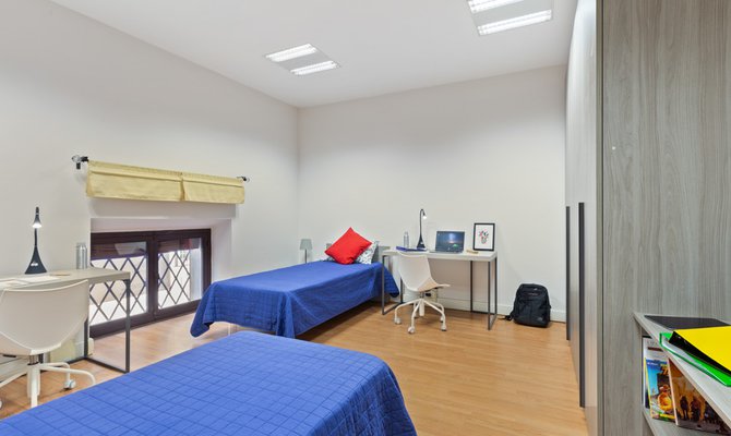 L’appartamento è composto da 5 camere singole e 1 camera doppia, 3 bagni, ampia cucina a vista, zona lavanderia e sala studio. La tariffa mensile all-inclusive è di € 360,00, comprensiva di tutte le spese e utenze (Wi-Fi, elettricità, acqua, riscaldamento, manutenzioni straordinarie).
