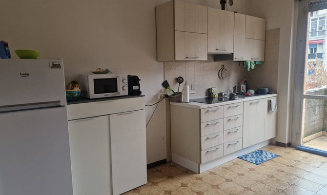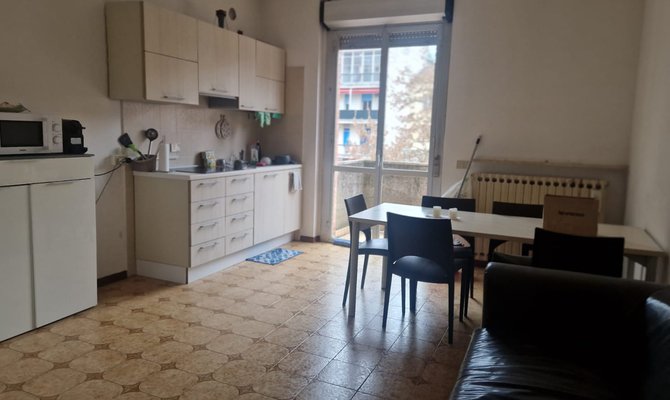 Ampio appartamento al secondo piano con ascensore, composto da ingresso, living con cucina a vista, bagno, due balconi e tre stanze singole