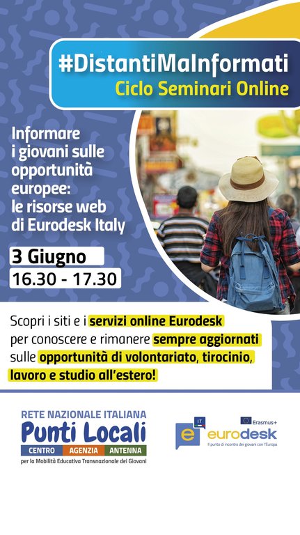 Il ciclo di webinar, denominato #DistantiMaInformati è promosso dalla Rete Nazionale Italiana dei Punti Locali Eurodesk.