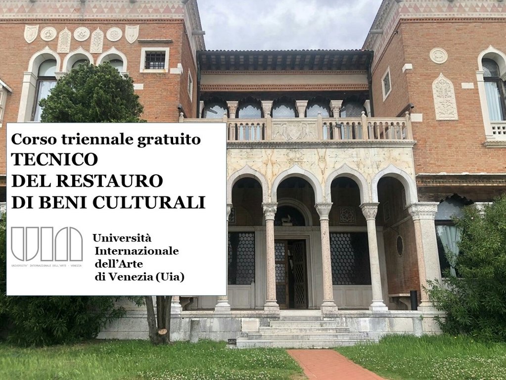 Sono aperte le preiscrizioni per l'anno 2020-2021 al Corso superiore triennale di Tecnico del Restauro di Beni Culturali dell'Università Internazionale dell'Arte di Venezia, gratuito e interamente finanziato da Fondo Sociale Europeo e Regione Veneto, comprensivo di buoni pasto e indennità di frequenza.