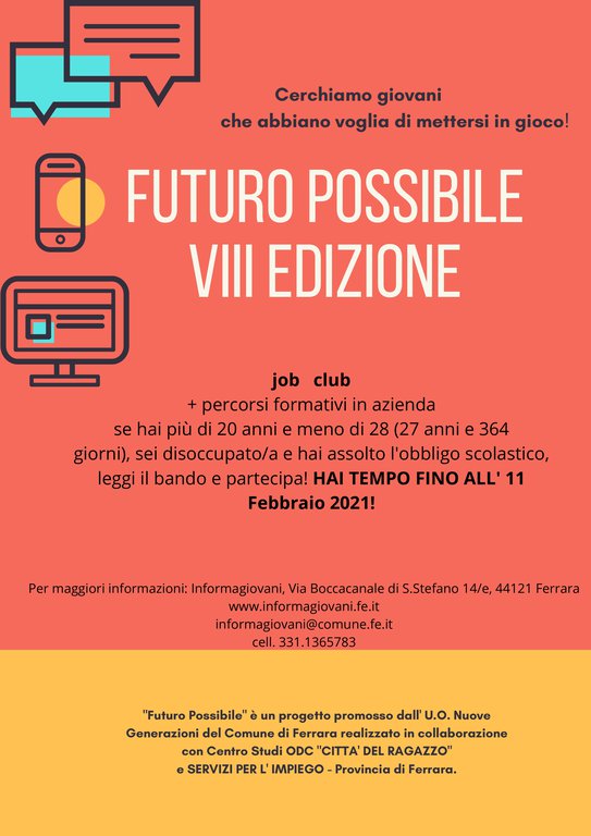 Dove sei: Homepage > Lavoro > Notizie Lavoro > Futuro Possibile: pubblicazione della graduatoria degli ammessi al progetto - VIII edizione