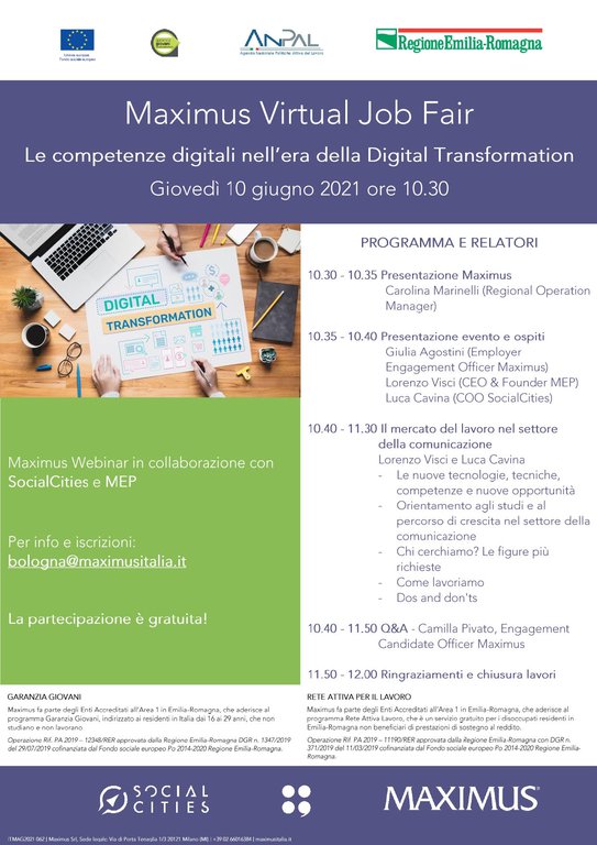 Maximus, in collaborazione con SocialCities e MEP, annuncia il prossimo Virtual Job Fair.