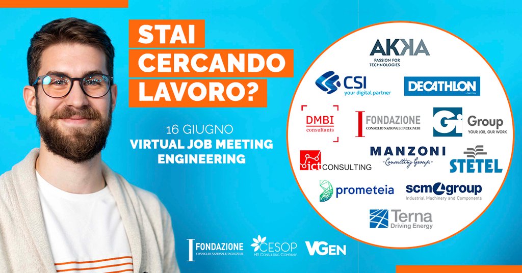 Mercoledì 16 Giugno dalle 9.30 alle 16.30, decine di responsabili del personale di importanti aziende nazionali e internazionali saranno on-line per offrire lavoro a laureati e laureandi in inggneria.