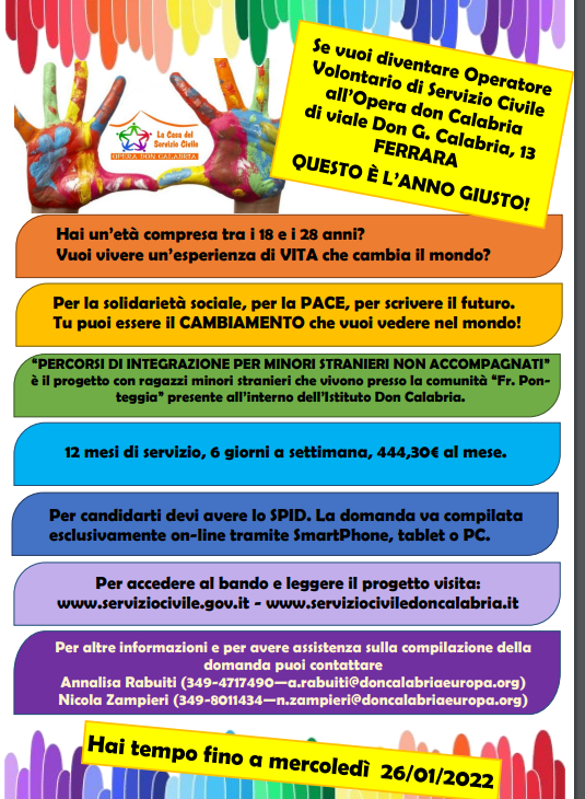 Per accedere al bando e leggere il progetto visita: www.serviziocivile.gov.it - www.serviziociviledoncalabria.it