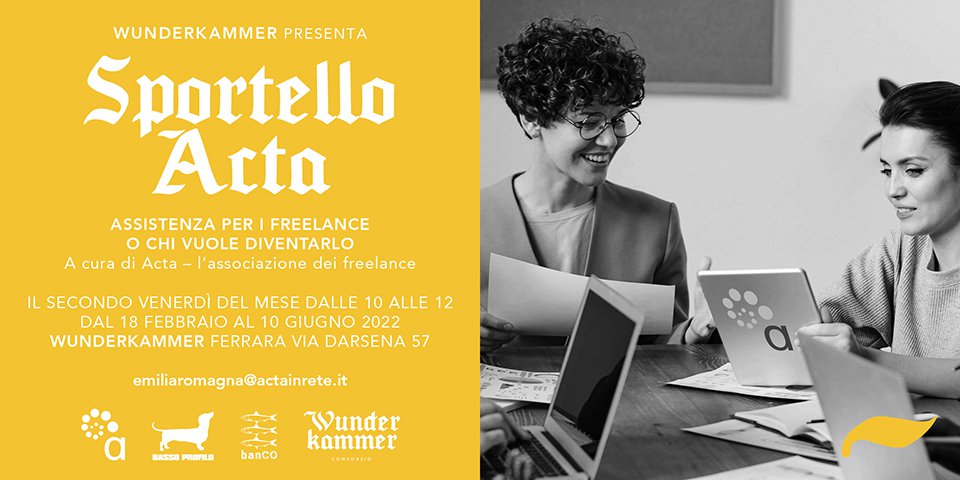 Lo sportello ACTA è attivo in diverse località d’Italia e in particolare, in Emilia-Romagna, anche a Bologna, Parma e Imola. L’apertura dello sportello a Ferrara è stata resa possibile grazie all’ospitalità del Consorzio Wunderkammer e alla partnership con l’associazione Basso Profilo (parte del consorzio stesso) e con banCO, spazio di CO-working e CO-manifacturing di Wunderkammer, nato per creare esperienze condivise di lavoro e progettazione negli ex magazzini fluviali della darsena di Ferrara.