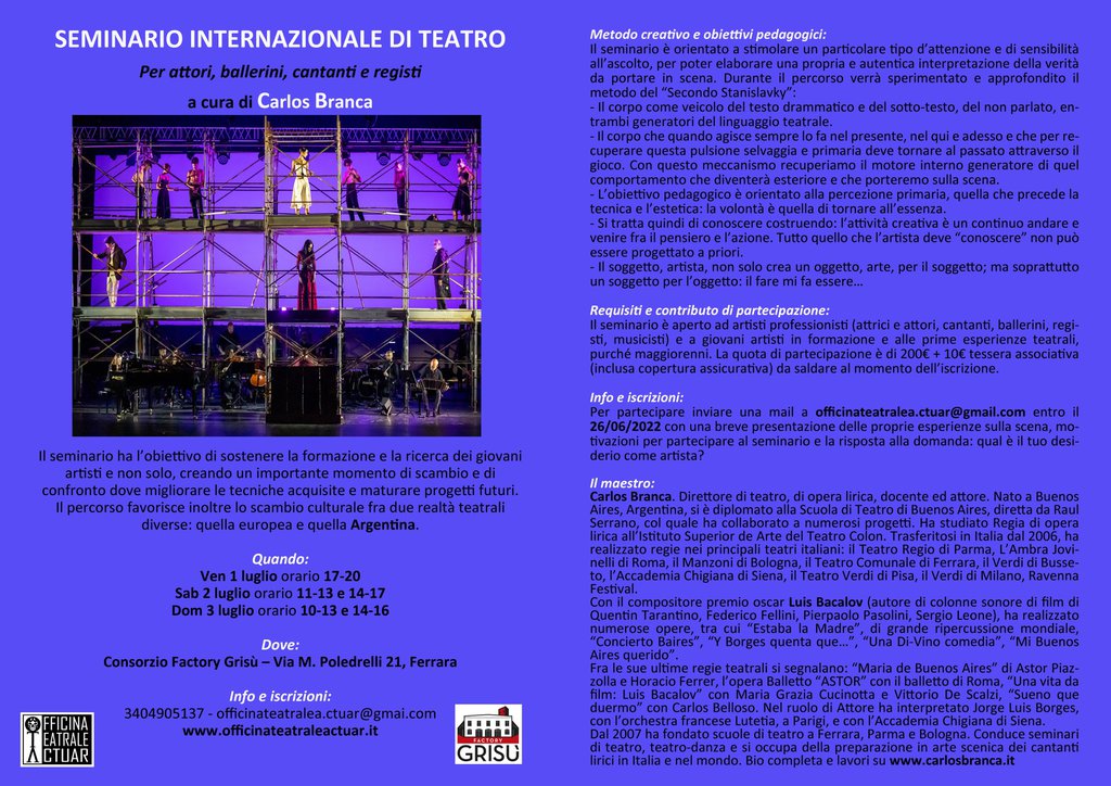 Il seminario è rivolto ad attrici e attori, ballerin*, cantanti e regist* di tutte le nazionalità e si terrà a Ferrara dall’1 al 3 luglio 2022.