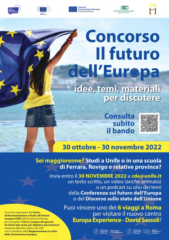 Il Centro di Documentazione e Studi sull’Unione europea (CDE) dell’Università di Ferrara bandisce, in collaborazione con il Movimento Federalista Europeo e l’Istituto di Storia Contemporanea di Ferrara, il "Concorso "Il futuro dell'Europa: idee, temi e materiali per discutere".