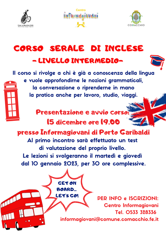 Per info e iscrizioni: 0533 328336 - informagiovani@comune.comacchio.fe.it