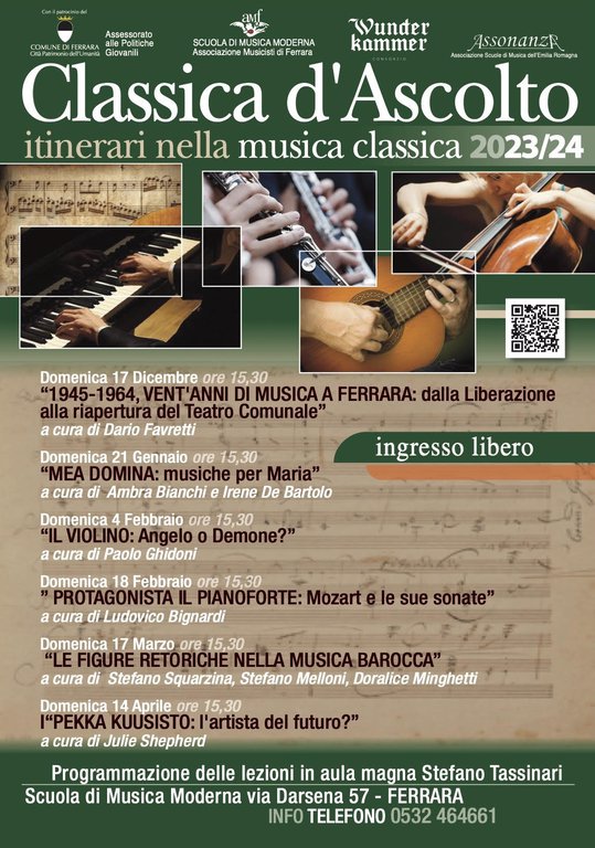 Per il ciclo di appuntamenti ad ingresso libero di Classica d'Ascolto organizzati dalla Scuola di Musica Moderna – Associazione Musicisti di Ferrara APS in collaborazione con il Consorzio Wunderkammer, con il patrocinio e il contributo del Comune di Ferrara.