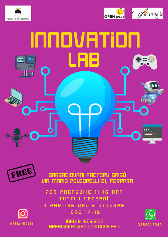 - Innovation lab, laboratorio di innovazione digitale, tutti i venerdì delle 17 alle 19 a partire dal 3 ottobre.