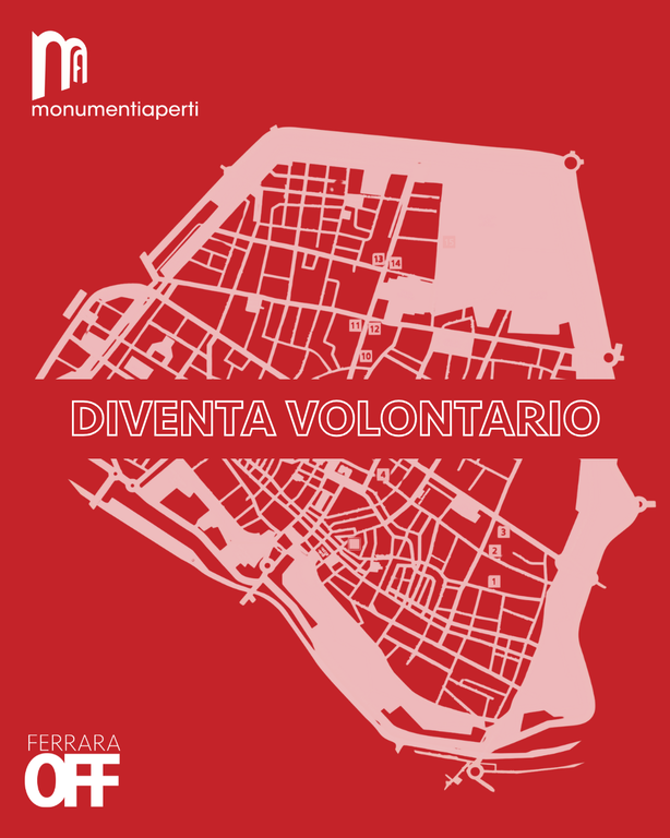 Ferrara Off APS, che organizza l'iniziativa in collaborazione con la Fondazione Ferrara Arte, il Comune di Ferrara e Imago Mundi OdV, cerca persone - a partire dai 18 anni - che, condividendo l'interesse per l’arte e la storia, siano disponibili a gestire il flusso dei visitatori, accogliere il pubblico e tutelare gli spazi nei diversi monumenti eccezionalmente aperti per le visite guidate, condotte da studentesse e studenti delle scuole primarie e secondarie di primo grado del Comune di Ferrara.