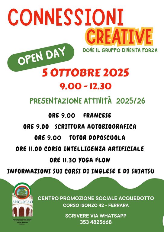 Il Centro Sociale Acquedotto apre le porte a un nuovo anno di attività formative e culturali, pensate per coinvolgere la comunità, stimolare la curiosità e offrire opportunità di crescita personale a tutte le età.