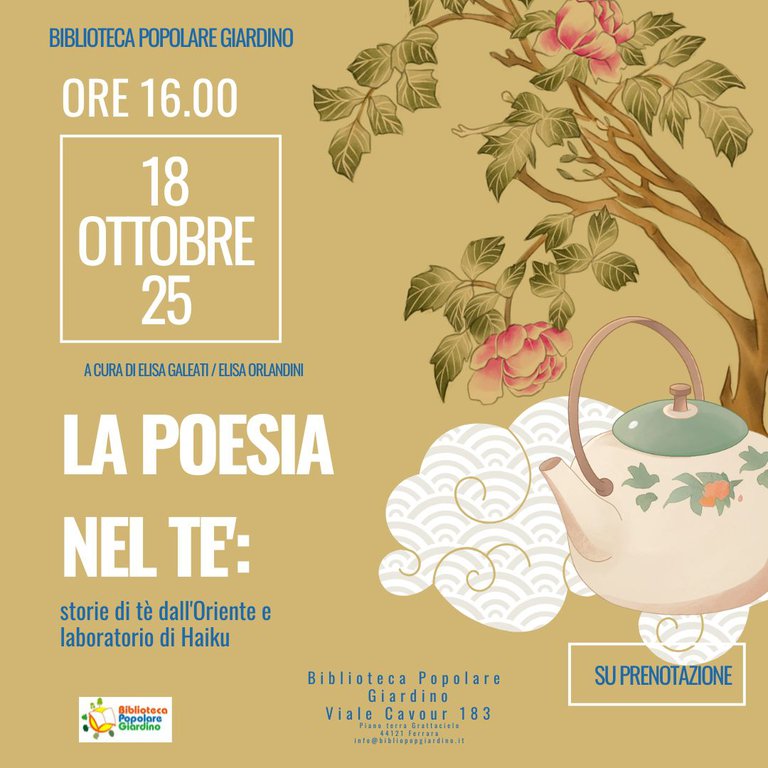 Dove sei: Homepage > Tempo libero > Notizie Tempo libero > La poesia nel tè: storie di tè dall'oriente e laboratorio di haiku - Biblioteca Popolare Giardino