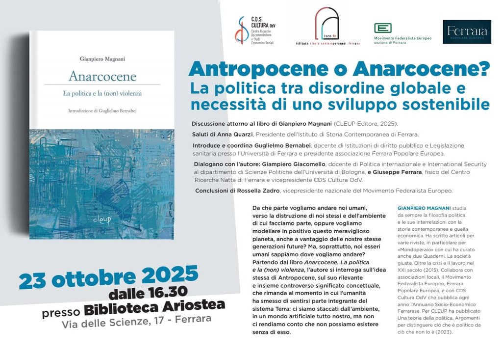 Dove sei: Homepage > Tempo libero > Notizie Tempo libero > Antropocene o Anarcocene? La politica tra disordine globale e necessità di uno sviluppo sostenibile - Biblioteca Ariostea