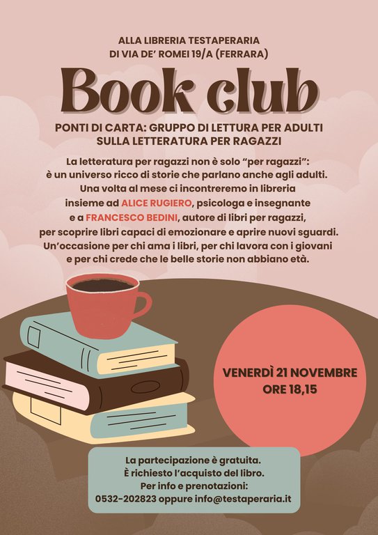 Book Club alla libreria Testaperaria, via De' Romei 19/a, Ferrara