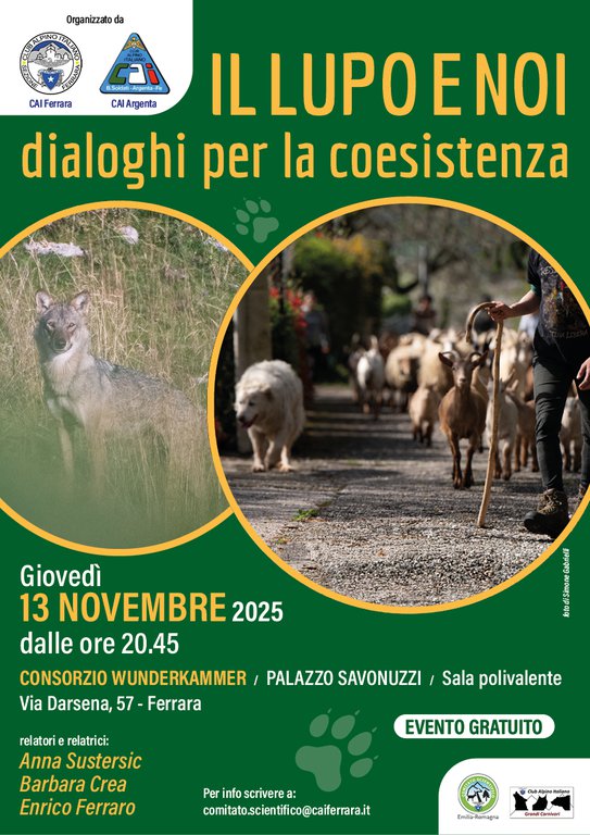 Dove sei: Homepage > Tempo libero > Notizie Tempo libero > CAI FERRARA - IL LUPO E NOI Dialoghi per la coesistenza Giovedì 13 novembre 2025, ore 20:45