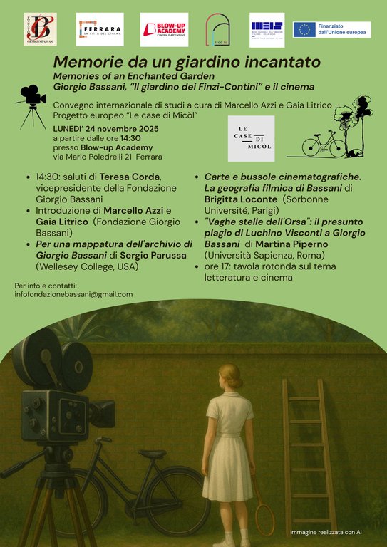 Lunedì 24 novembre 2025, presso la Blow-up Academy di Ferrara, si svolgerà il convegno internazionale Memorie da un giardino incantato, quinta parte del più ampio progetto europeo Le case di Micòl, promosso dalla filiera Ferrara La città del cinema e dai suoi partner europei. Il progetto è volto alla creazione di "un itinerario fisico europeo delle case delle famiglie ebree dove ritrovarono l'amore negli ultimi istanti, dopo la deportazione: le case di Micòl (Micòl, come la protagonista del romanzo di Giorgio Bassani Il giardino dei Finzi-Contini), uno per ogni Paese coinvolto nel progetto: Italia, Polonia, Belgio e Repubblica Ceca".