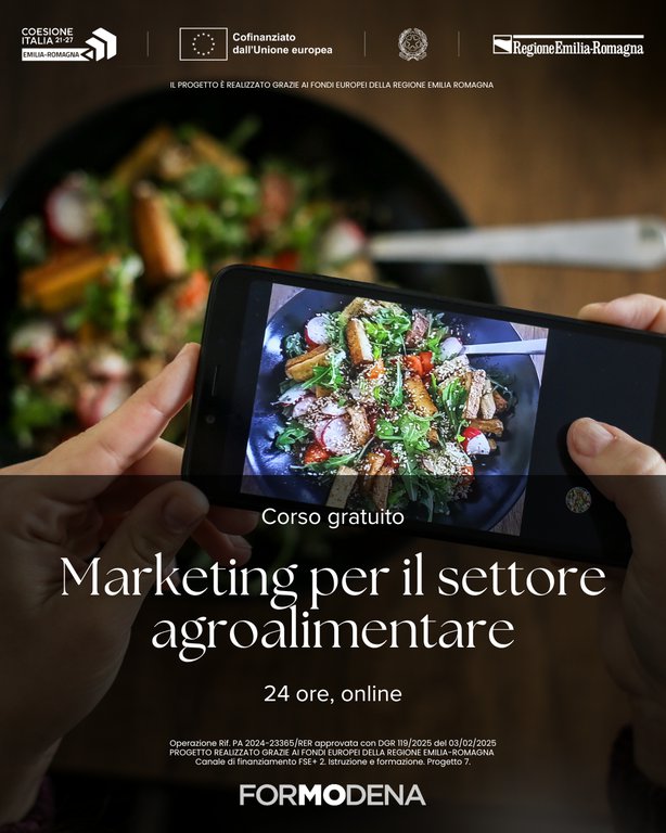 Dove sei: Homepage > Formazione > Notizie Formazione > Nuovo corso gratuito 2026 Formodena: Marketing per l'agroalimentare