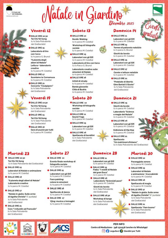 È in arrivo “Il tempo della festa”, iniziativa promossa da Biblioteca Popolare Giardino insieme a @Cumbre aps, @Ludus aps e @Pangea aps. Workshop, spettacoli e giochi per rafforzare il senso di comunità all’interno del quartiere Giardino. “Il tempo della festa” si inserisce all’interno di “Natale in Giardino”, iniziativa promossa dal @Comune di Ferrara, in collaborazione con la @Regione Emilia-Romagna e curata da: @La Casona, @Biblioteca Popolare Giardino, @Compagnia Gad Città di Ferrara e @Aics.