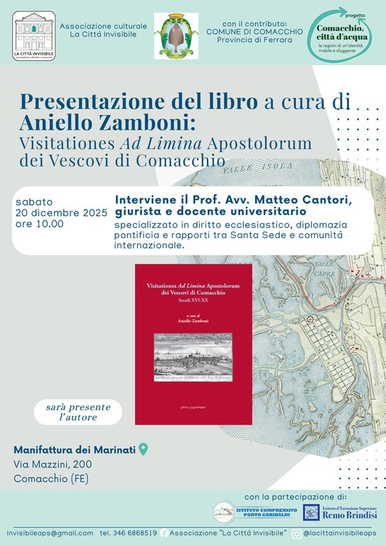 Presenteremo il volume Visitationes ad Limina Apostolorum dei Vescovi di Comacchio. Secoli XVI–XX, a cura del prof. Aniello Zamboni, importantissimo lavoro di ricerca storica.