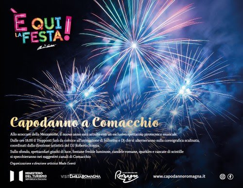 Festeggeremo l'arrivo del nuovo anno con un grande spettacolo pirotecnico presso il Ponte San Pietro. Il Capodanno a Comacchio è un'esperienza unica che unisce la magia di un antico borgo alle tradizioni festose del nuovo anno. Comacchio si trasforma in un palcoscenico perfetto per accogliere il 2026, tra eventi musicali e la possibilità di gustare il tradizionale cenone di capodanno a base di pesce nei ristoranti del centro storico. A mezzanotte un tripudio di luci illumineranno la valle.