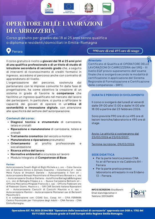 Dove sei: Homepage > Formazione > Notizie Formazione > Corso per operatore delle lavorazioni in carrozzeria - Cna Foer