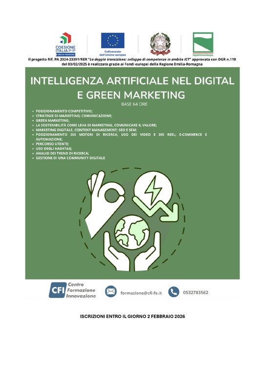 Dove sei: Homepage > Formazione > Notizie Formazione > INTELLIGENZA ARTIFICIALE NEL DIGITAL E GREEN MARKETING