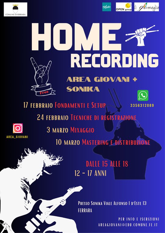 Prende il via il primo laboratorio musicale dedicato all'home recording, un nuovo progetto che arricchisce l'offerta rivolta agli adolescenti e nasce dalla collaborazione tra Area Giovani e il Centro Giovanile Sonika, gestito dall'Associazione Ultimo Baluardo.