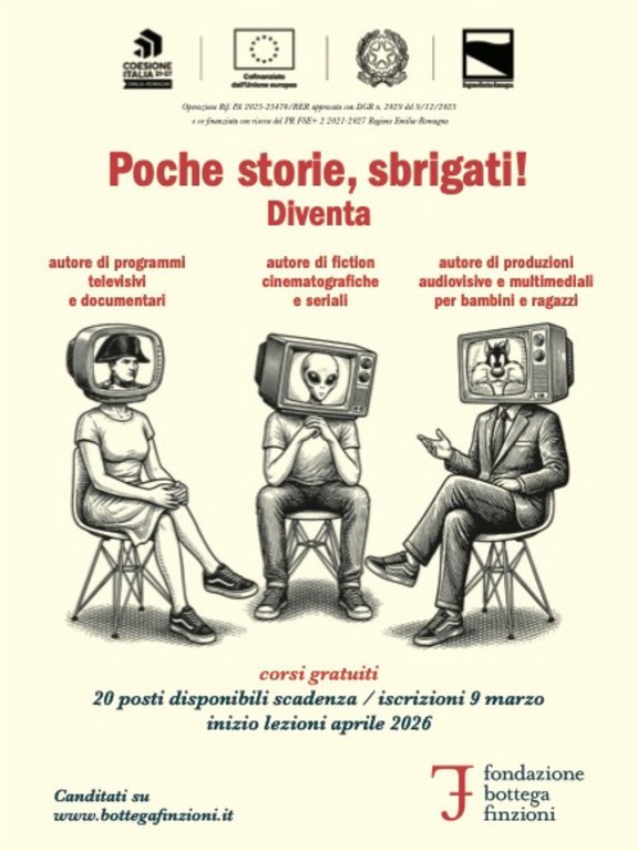Dove sei: Homepage > Formazione > Notizie Formazione > Corsi di scrittura per cinema e tv gratuiti in Emilia-Romagna - Fondazione Bottega Finzioni