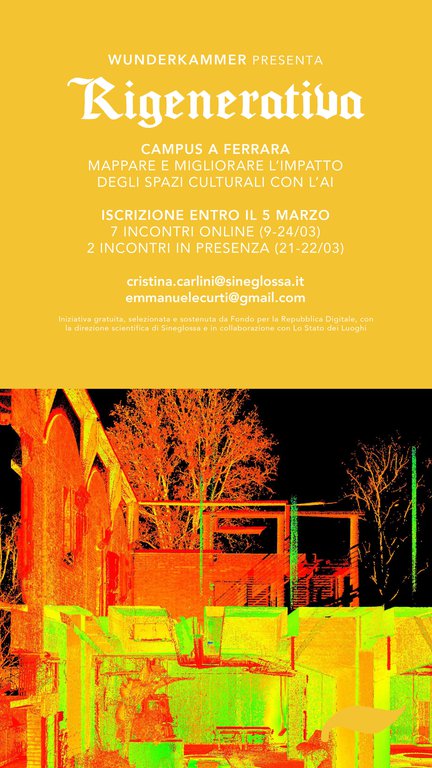 Per ulteriori info sul programma: https://www.consorziowunderkammer.org/en/notizie/220/rigenerativa-campus-a-ferrara.html