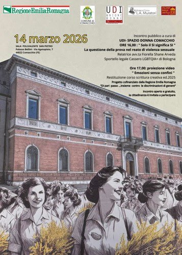Sabato 14 marzo 2026, alle ore 16:00, presso la Sala Polivalente San Pietro a Comacchio si terrà un incontro pubblico nel corso del quale l’avvocato Fiorella Shane Arveda affronterà il tema di grande attualità “Solo il SÌ significa SÌ. La questione della prova nel reato di violenza sessuale”.