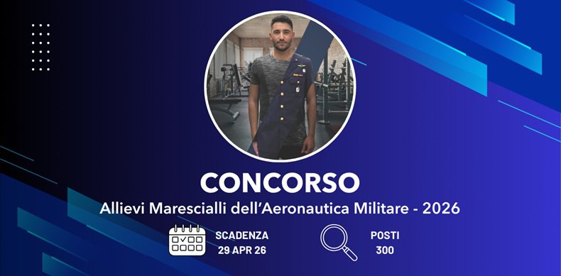 Dove sei: Homepage > Lavoro > Notizie Lavoro > Concorso pubblico, per titoli ed esami, per l'ammissione al 29° corso biennale (2026 - 2028) per n. 300 Allievi Marescialli dell'Aeronautica Militare