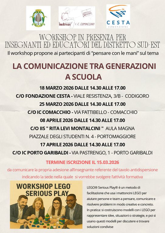 WORKSHOP IN PRESENZA PER INSEGNANTI ED EDUCATORI DEL DISTRETTO SUD-EST