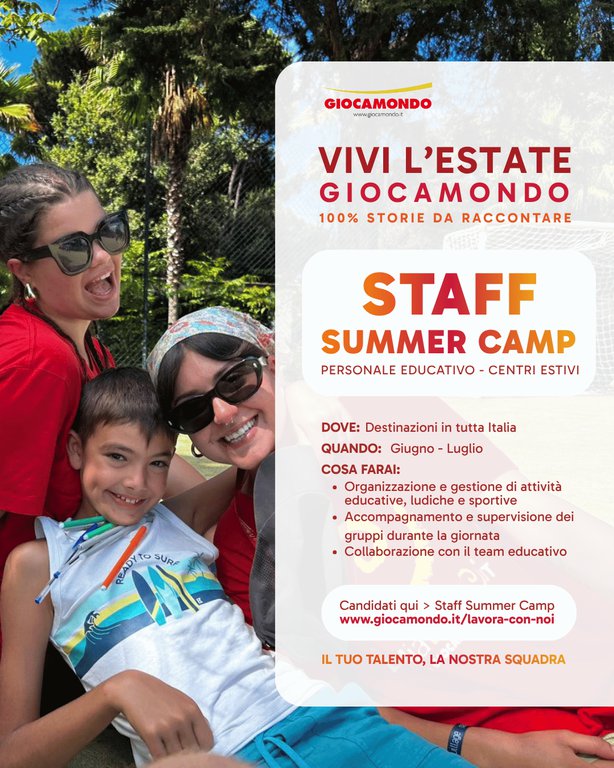 Per la prossima stagione estiva, Giocamondo prevede l'inserimento di circa 400 figure professionali nel team "LaMiaEstate" su tutto il territorio nazionale, nello specifico: