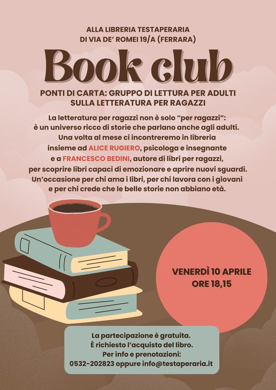 VENERDÌ 10 APRILE ORE 17: BOOK CLUB 13+