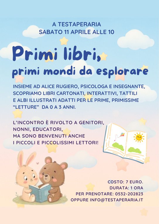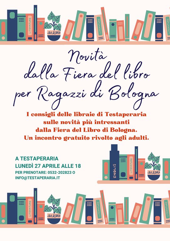 Per partecipare alle nostre iniziative, chiediamo di telefonare in libreria al numero 0532-202823 oppure di scriverci una mail a info@testaperaria.it