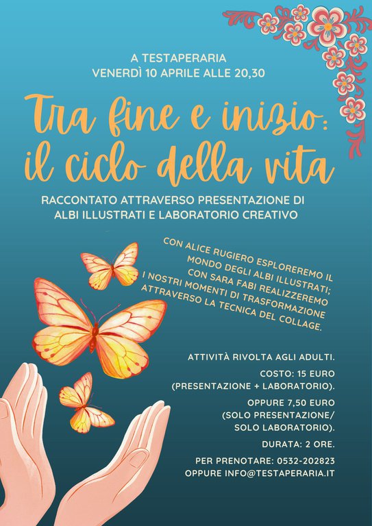 L’incontro è rivolto agli adulti - Costo: euro 15 (presentazione + laboratorio) oppure 7,50 euro (solo presentazione/solo laboratorio) - Durata: 1 ora e mezzo