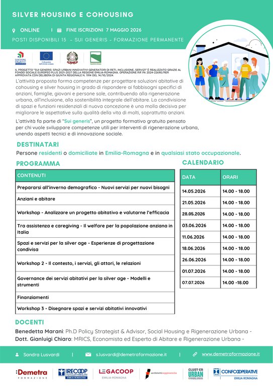 Il corso si inserisce nel progetto “Sui Generis – Spazi urbani innovativi generatori di reti, inclusione, servizi”, finanziato dal Fondo Sociale Europeo Plus e promosso dalla Regione Emilia-Romagna.
