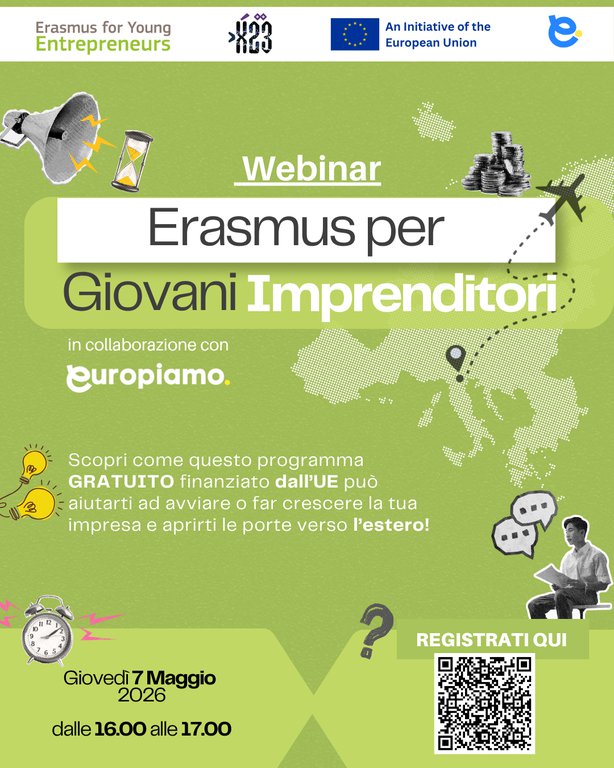 X23 è un'organizzazione di sostegno alle imprese con sede a Bergamo e un'organizzazione intermediaria nel programma Erasmus for Young Entrepreneurs (EYE). EYE consente agli aspiranti imprenditori/neo imprenditori (NE) di acquisire esperienza pratica all'estero con imprenditori esperti (HE).