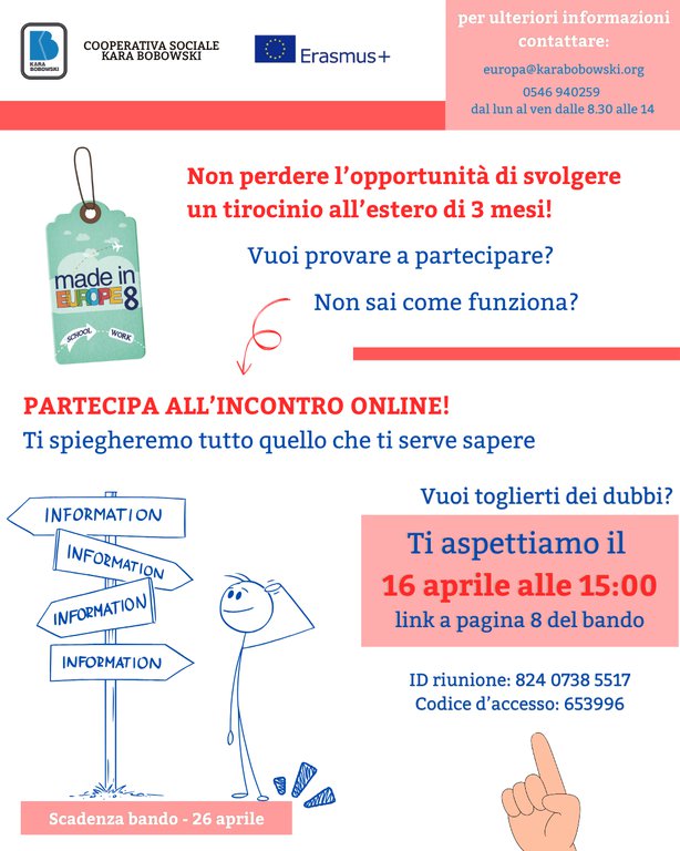 Per info, inviare email a europa@karabobowski.org o telefonare al numero 0546 940259.