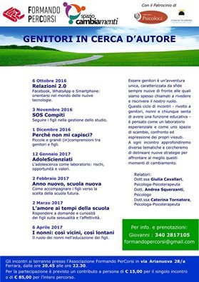 Dove sei: Homepage > Formazione > Notizie Formazione > Nuovo progetto di Ripetizioni Ferrara Formando PerCorsi nato in collaborazione con Spazio Cambiamenti: "GENITORI IN CERCA D'AUTORE"