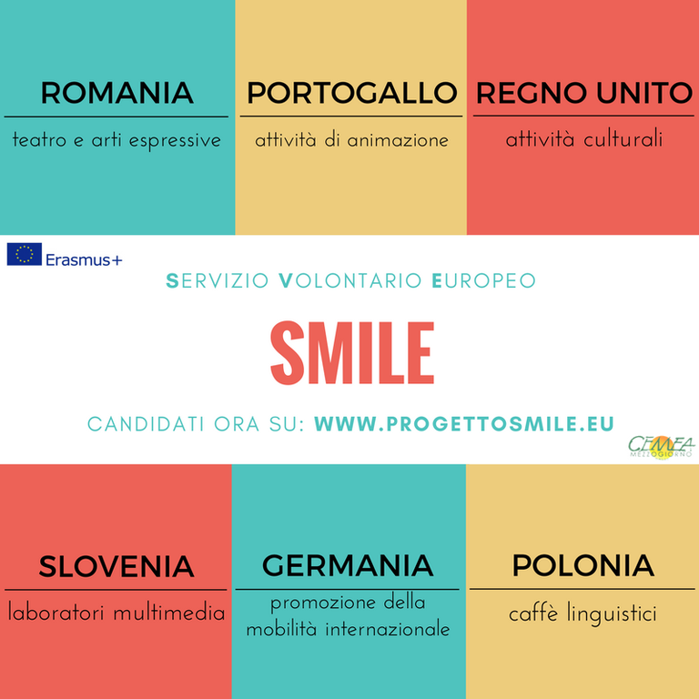 Tutte le informazioni sul funzionamento dello SVE, i prossimi progetti disponibili e la modalità di candidatura su www.progettosmile.eu.