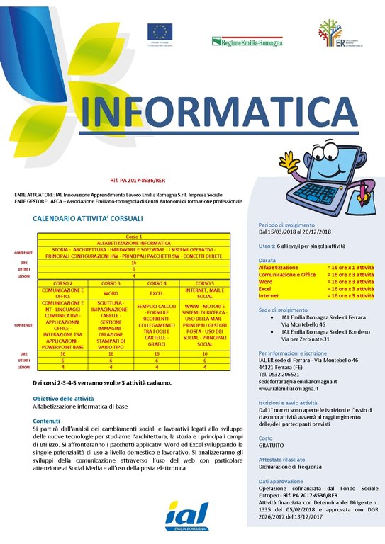 Dove sei: Homepage > Formazione > Notizie Formazione > Corsi gratuiti informatica - Ial Ferrara