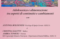 Si terrà martedì 16 dicembre 2025 dalle ore 17.30 alle 19.30 con “ Adolescenza e alimentazione: tra aspetti di continuità e cambiamenti” condotto da Antonia Bolognesi Psicologa di Spazio Giovani-Ausl -Fe, Cristina Saletti Medico e Ambra Tonioli Dietista -UOC Igiene degli Alimenti e Nutrizione- Dipartimento di Sanità Pubblica-Ausl- Fe.